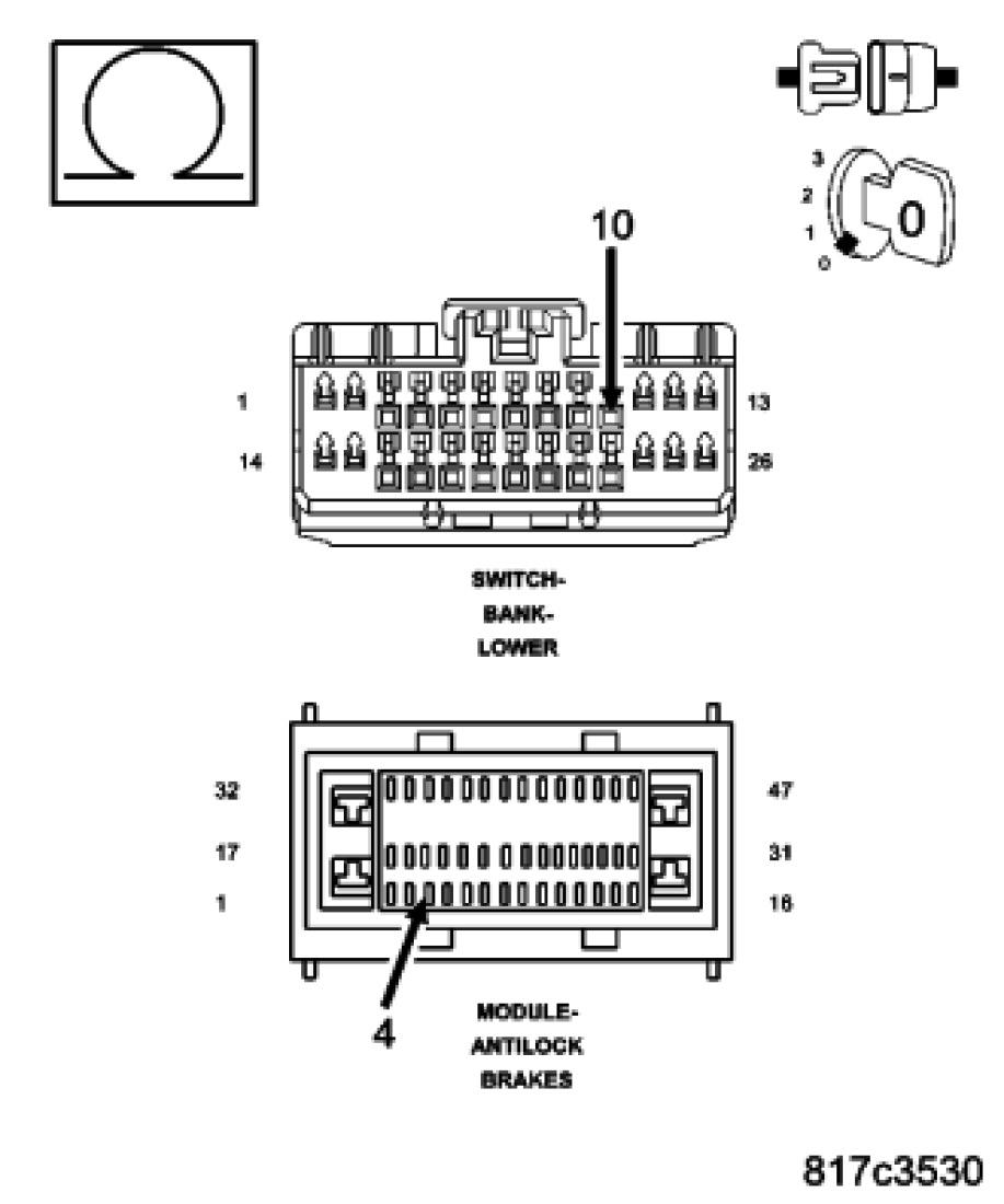 Measure the internal resistance of the ESP/TCS Switch between the (B46) ESP/TCS control circuit and (Z906) Ground circuit.