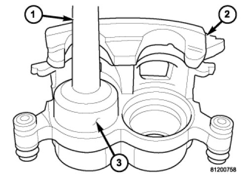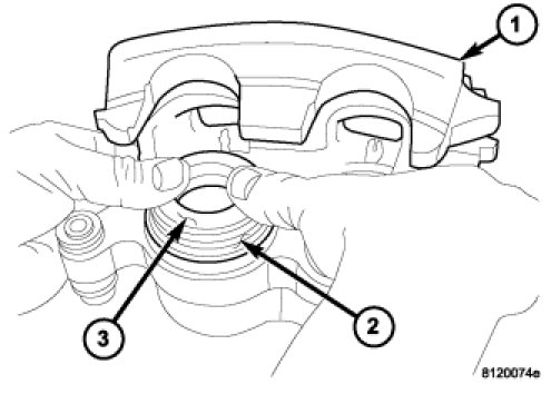 5. Install piston (3) into caliper bore and press piston down to the bottom of the caliper bore by hand or with hammer handle.