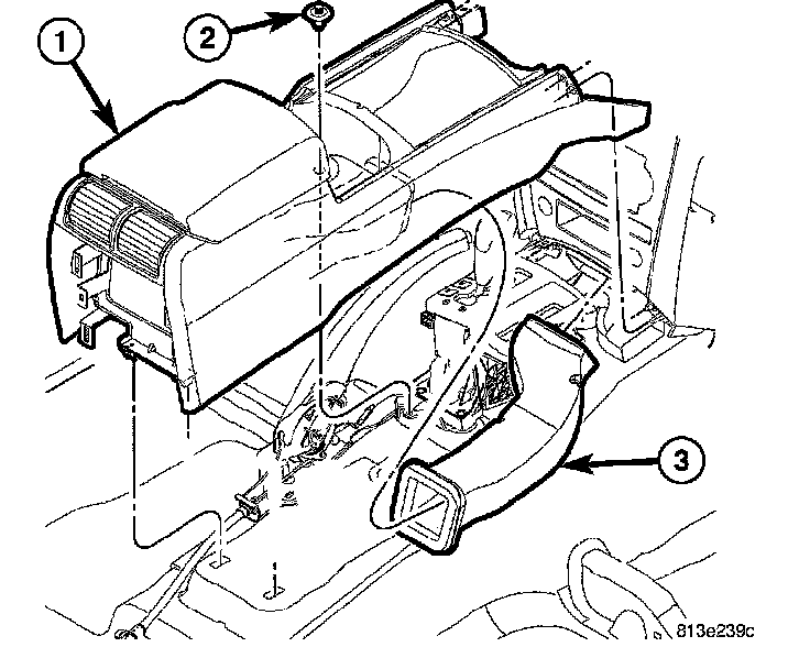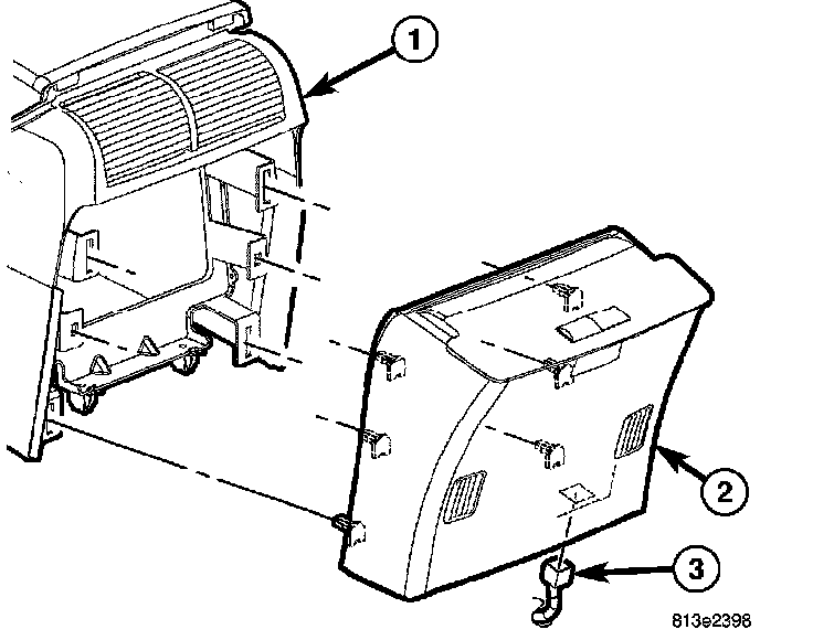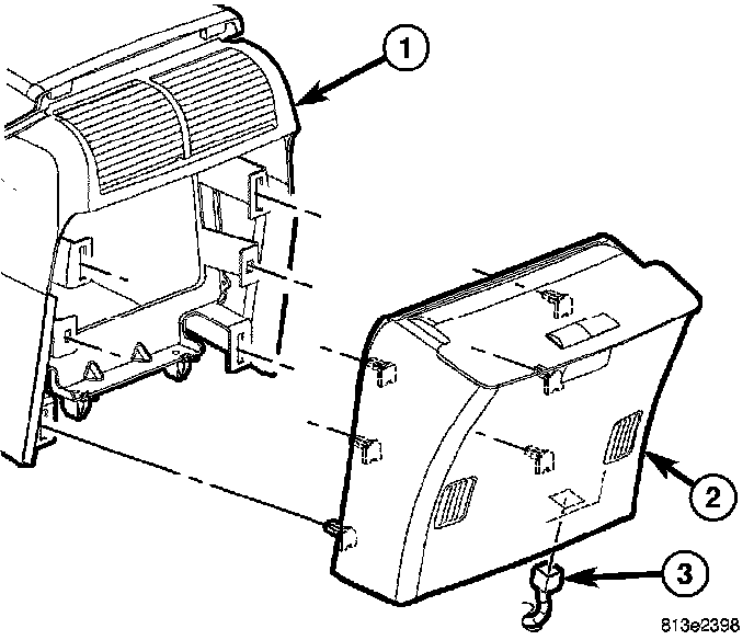 15. Install the console rear cover (2) or the DVD player (if equipped).
