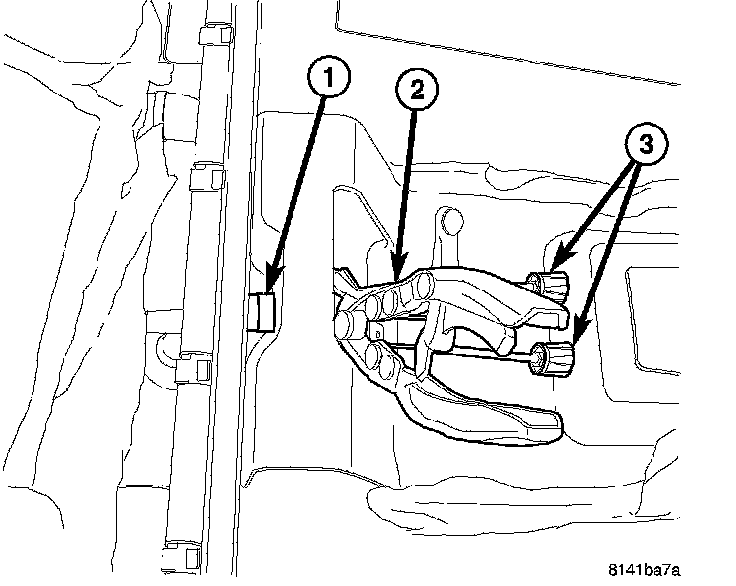4. Install the 2 front cable routing clamps and the 3 nuts (2&4).