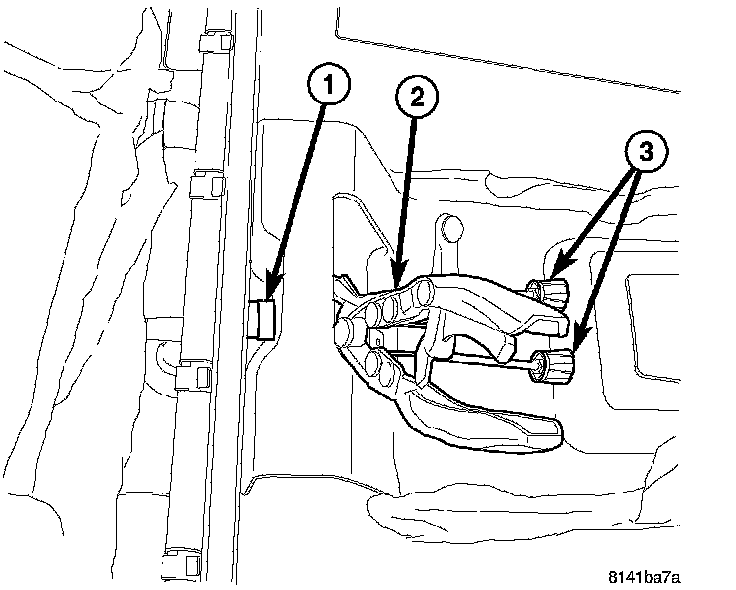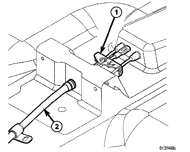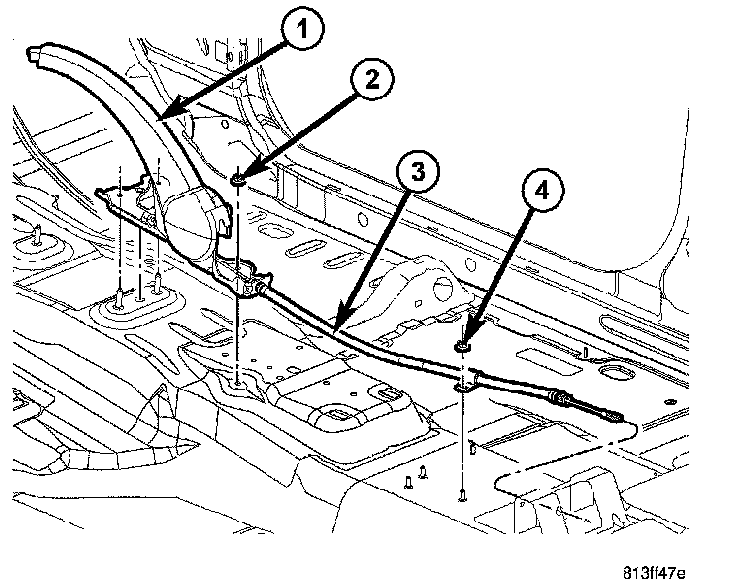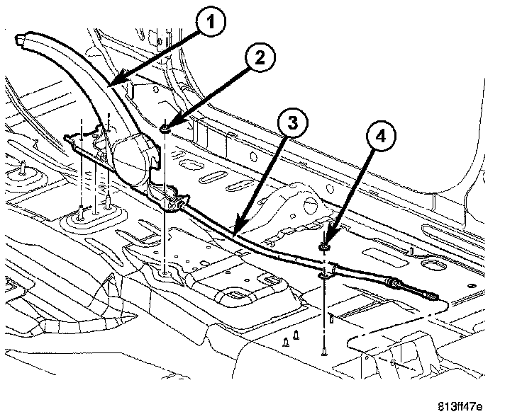 1. Install the front cable (3) at the hand lever mounting bracket (1).