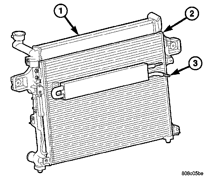 CAUTION: When removing the radiator or A/C condenser for any reason, note the location of all radiator-to-body and radiator-to-A/C condenser rubber air seals. These are used at the top, bottom and sides of the radiator and A/C condenser. To prevent overheating, these seals must be installed to their original positions.