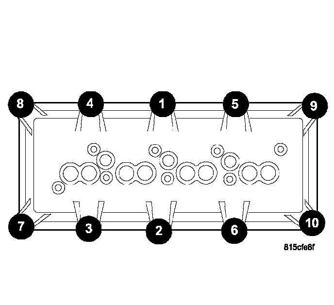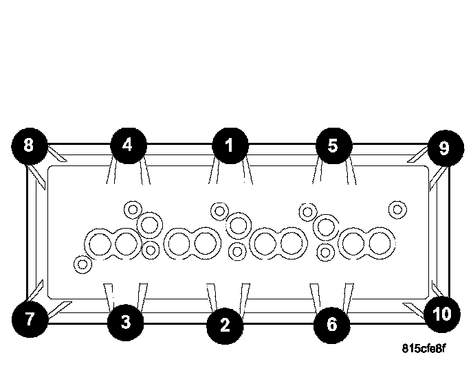 4. Tighten the rocker shaft bolts to 22 Nm (195 inch lbs.) torque, using the sequence provided.