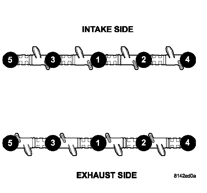 3. Install rocker shaft assemblies in the same order as removed.