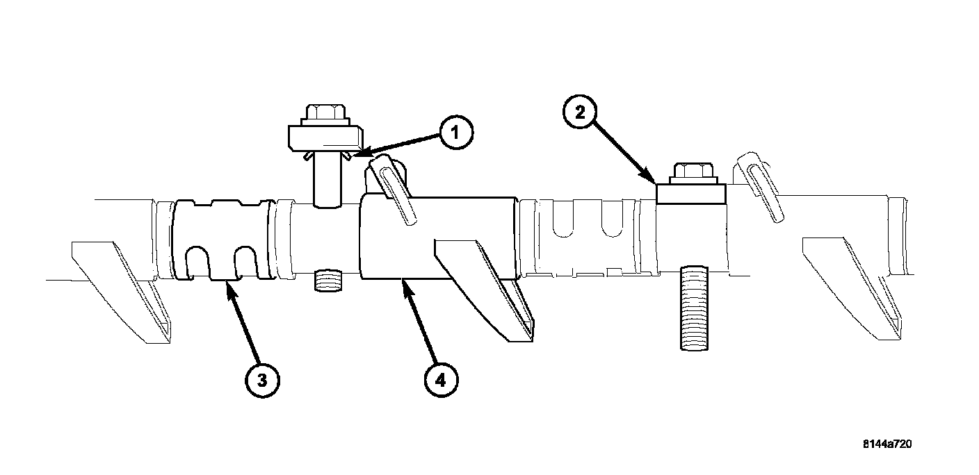 CAUTION: Verify that pushrod is installed into rocker arm (4) and tappet correctly while installing rocker shaft assembly. Recheck after rocker shaft has been torqued to specification.