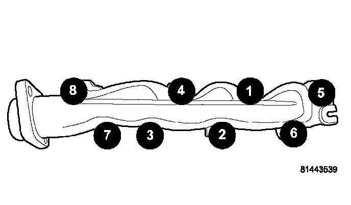 2. Install manifold bolts and tighten to 25 Nm (18 ft. lbs.).