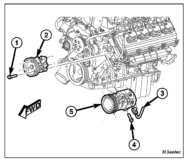 1. Position the A/C compressor (5) into the engine compartment.