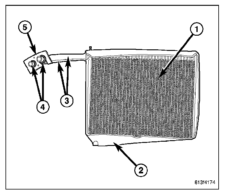 The A/C evaporator tubes (3) are connected and sealed to the A/C expansion valve by use of rubber O-rings (4) and a tapping block (5).