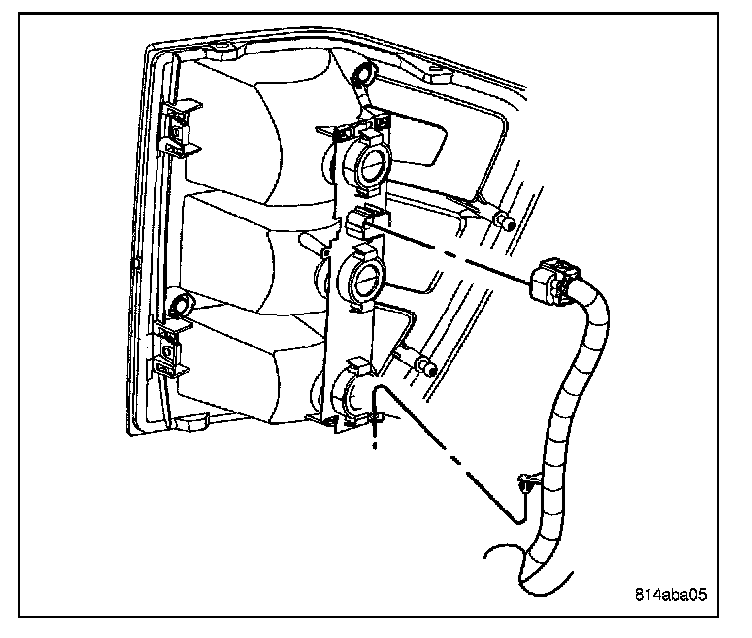 3. Engage the retainer on the wire harness for the lamp into the tab on the back of the lamp housing.