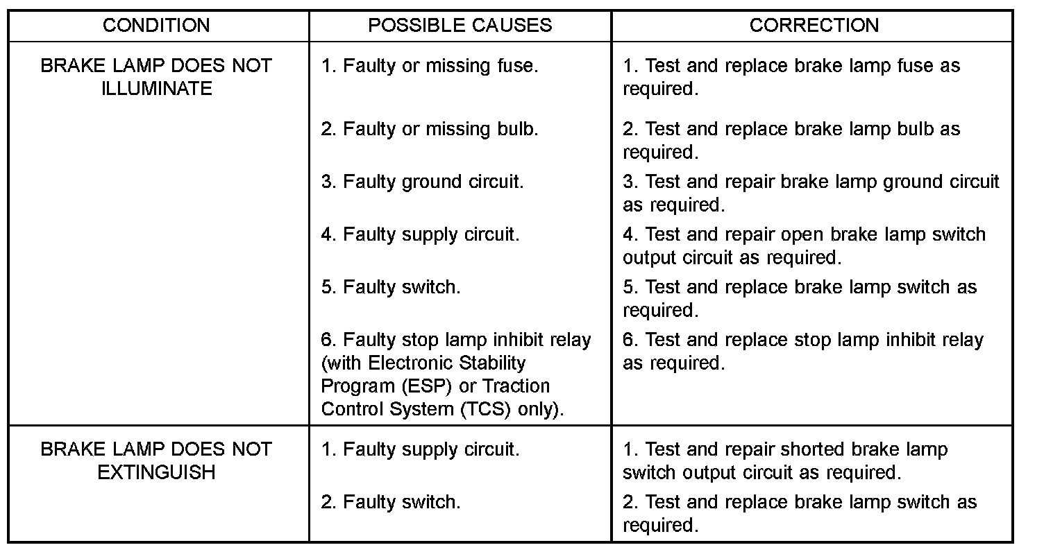 NOTE: The Center High Mounted Stop Lamp (CHMSL) is illuminated by several Light-Emitting Diode (LED) units that are soldered to the electronic circuit board within the lamp housing. If the brake lamps and all of the LED units within the CHMSL fail to operate, diagnose and repair the brake lamps before attempting to repair the CHMSL. If the brake lamps operate but none of the CHMSL LED units illuminate, test and repair the CHMSL ground and/or supply circuit as required. If some of the CHMSL LED units operate and some do not, the CHMSL assembly must be replaced with a new unit.