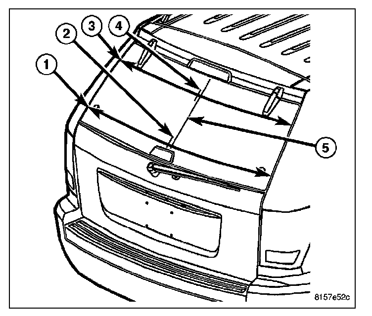 1. Take a measurement (3) across the lower edge of the liftgate glass hinges using the vertical edges of the body liftgate opening as the reference points.