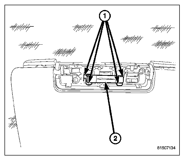 BULBNOTE: Vehicles equipped with optional vanity lamps have a single lamp above a covered mirror that is integral to each sun visor. Each lamp is independently controlled by an integral switch that is automatically actuated by the mirror cover. The bulb types and service procedures are identical for both of these lamps.