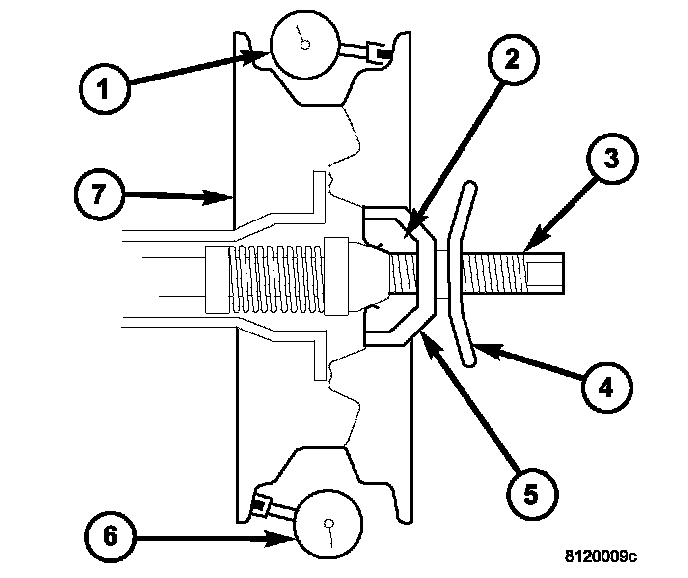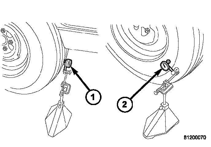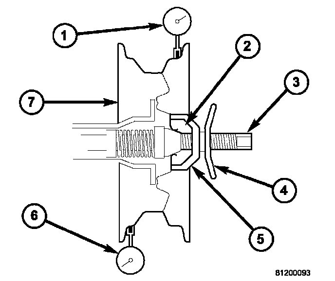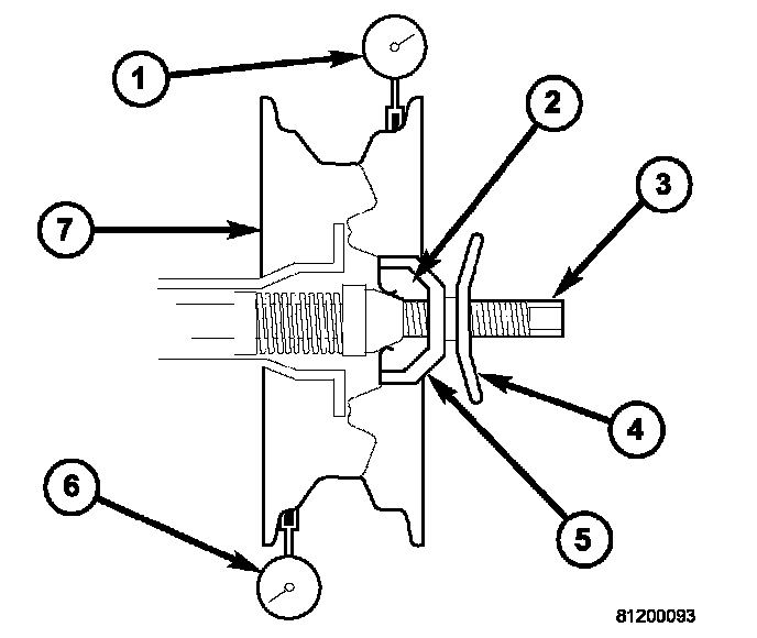 6. Check radial runout. If still excessive, mark tire sidewall, wheel, and stud at point of maximum runout and proceed to Method 2.