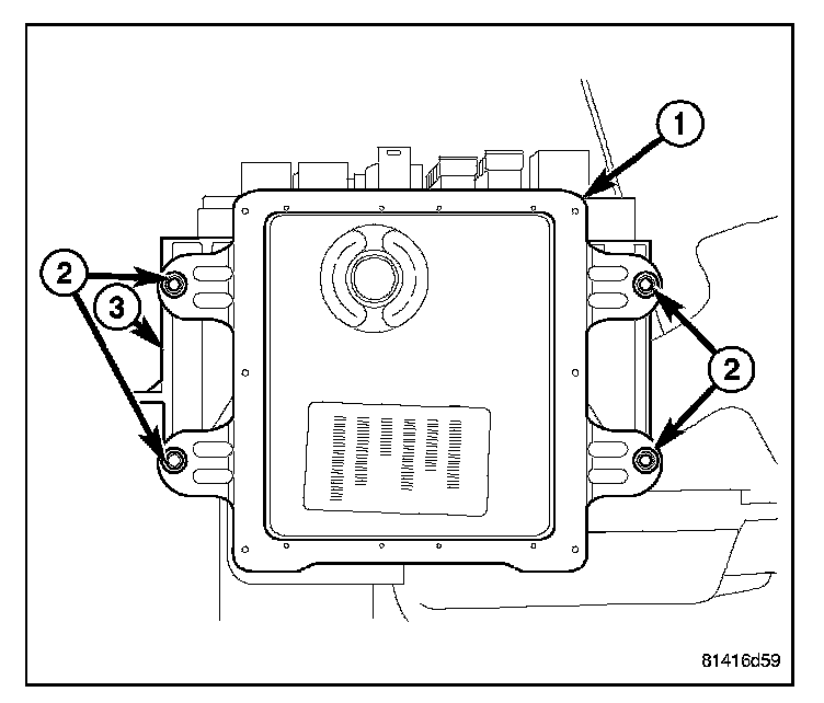 3. Remove the four fasteners (2) securing the Front Control Module (FCM) (1) to the IPM (3).