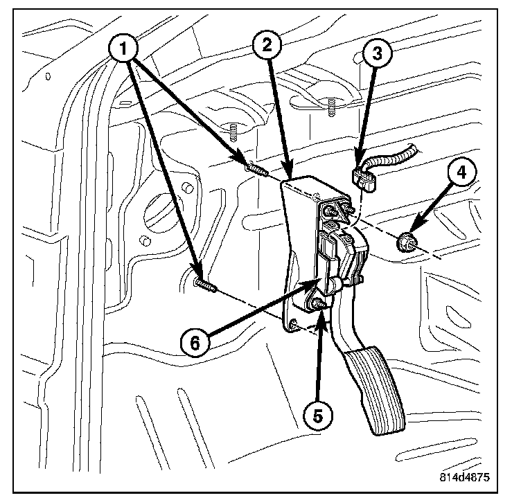 The Accelerator Pedal Position Sensor (APPS) (6) is attached to the accelerator pedal assembly under the instrument panel.