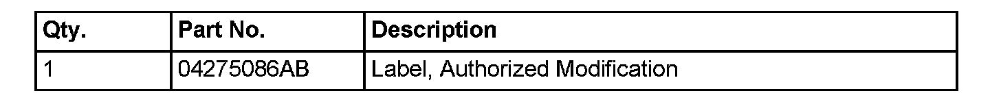 6. Type the necessary information on the "Authorized Modification Label" p/n 04275086AB and attach near the VECI label (Fig 1).