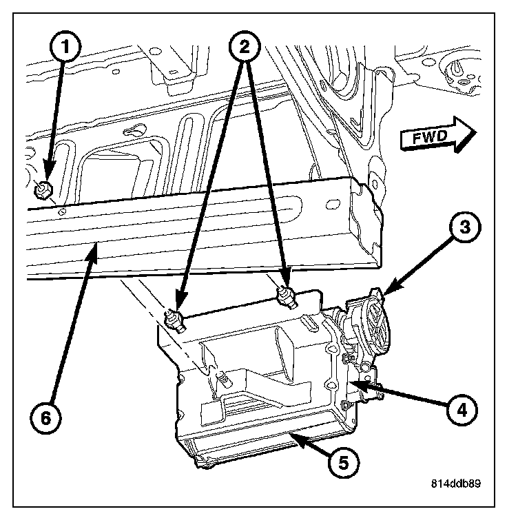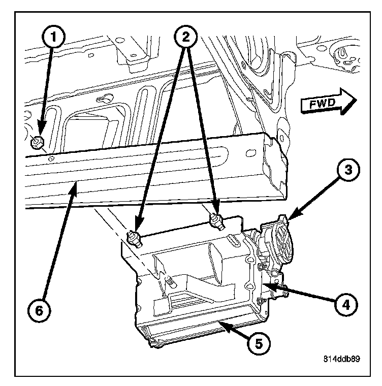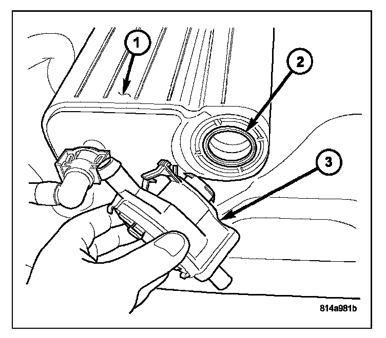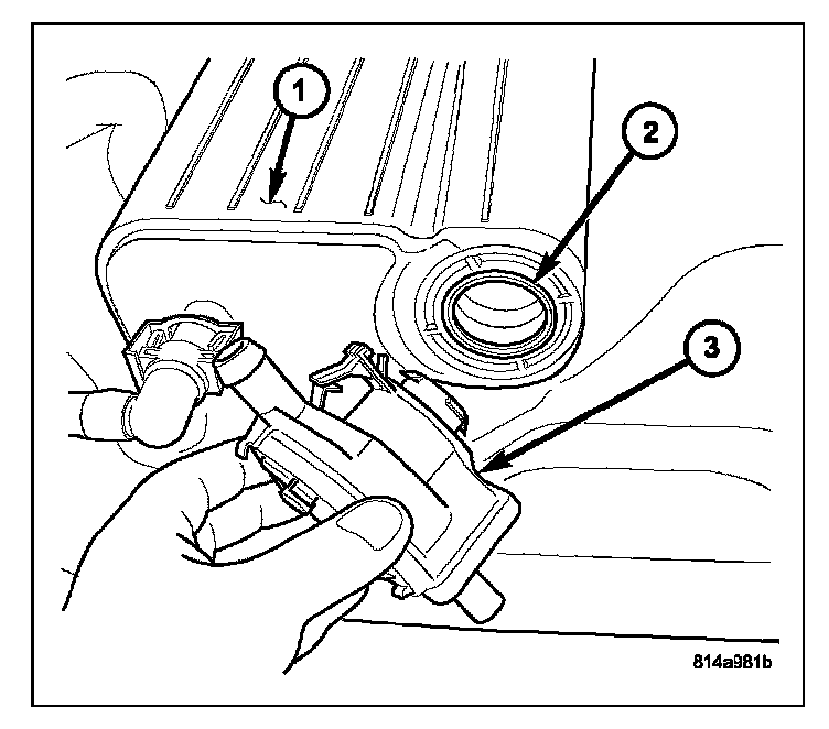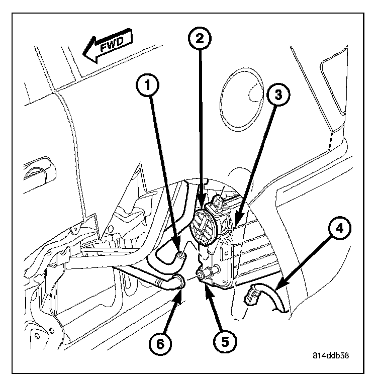 REMOVALThe NVLD pump (2) is attached to the EVAP canister (3). This assembly is located in the left-rear quarterpanel behind the left-rear tire.