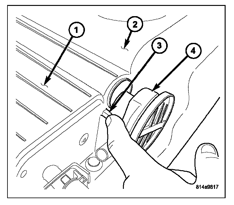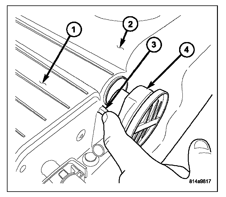 3. Rotate pump (4) until tab (3) aligns with notch in EVAP canister (1).