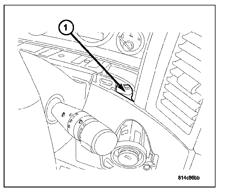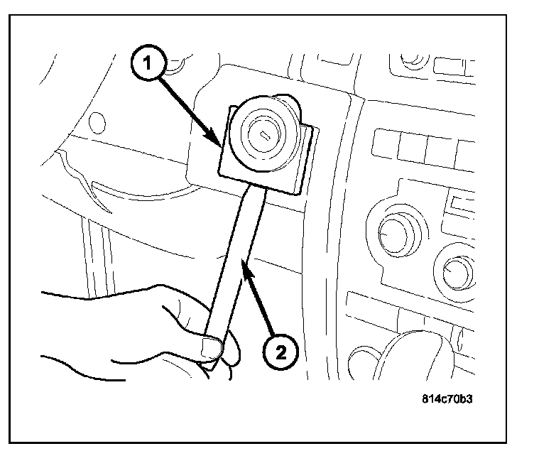 1. Install ignition key into lock cylinder (1). Rotate key to "ON" position (retaining tab on side of lock cylinder (3)can now be depressed).