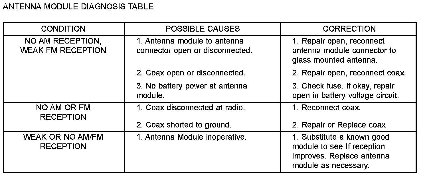 Antenna Module Diagnosis Table: