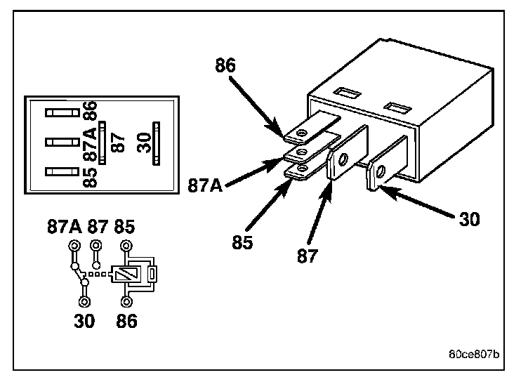 - Normally Closed Terminal (87A) - The normally closed terminal is not connected to any circuit in this application, but will have battery voltage present whenever the relay is de-energized.