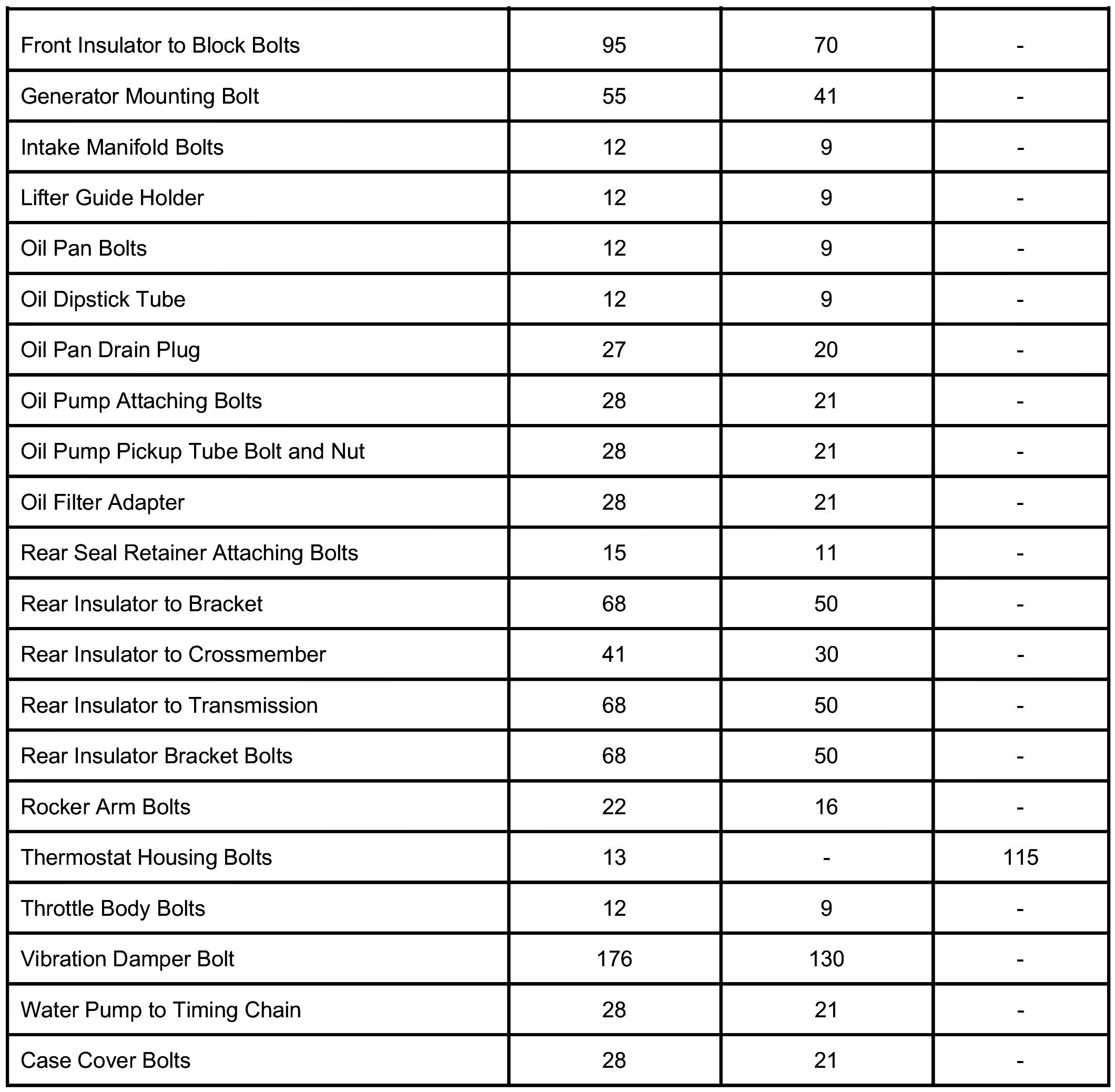 Engine Torque Specifications