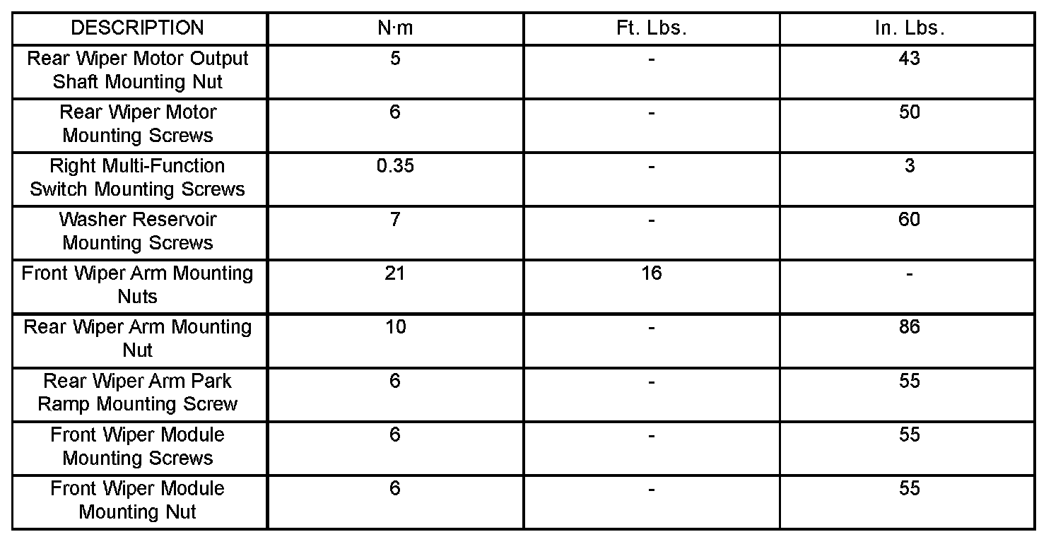 Torque Specifications: