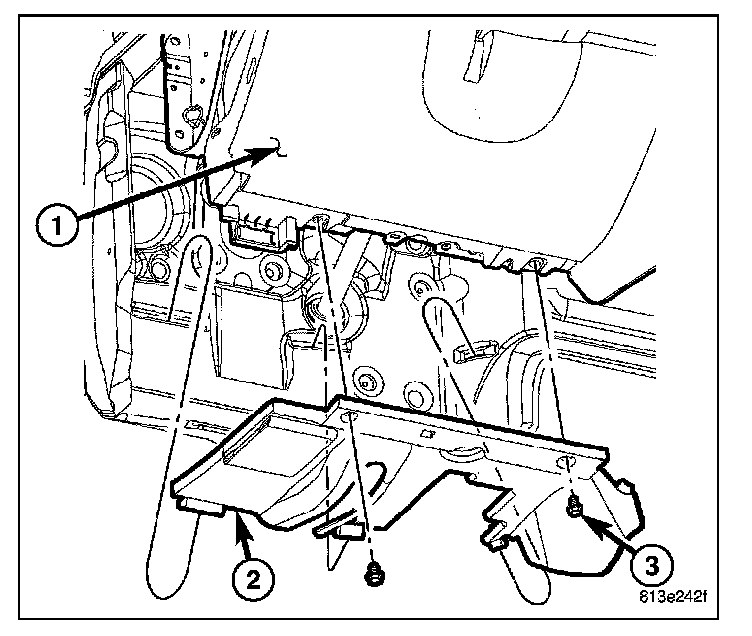 2. Remove the bolts (3) and remove the drivers side hush panel (2).