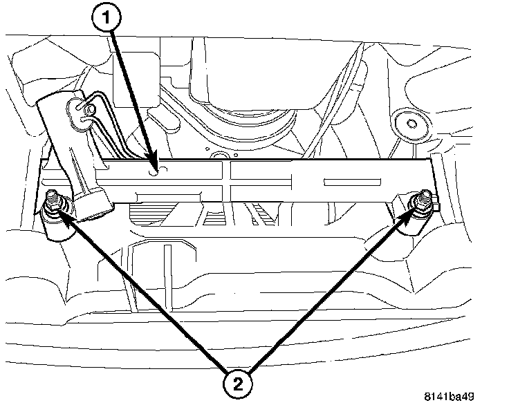 13. Remove the two steering gear mounting bolts (2).