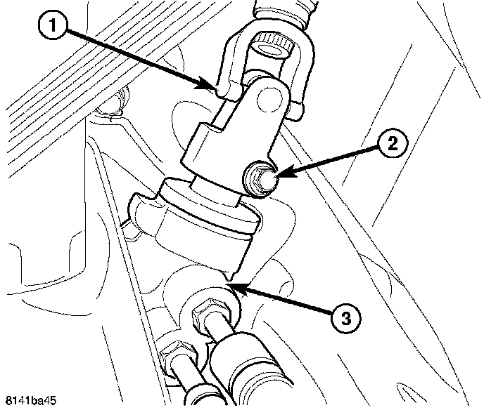 9. Install the column coupler shaft into the lower coupling (1) and install a new bolt (2), Tighten to 49 Nm (36 ft. lbs.).