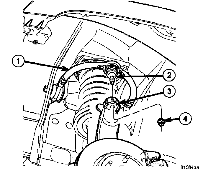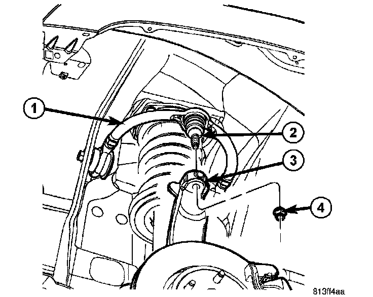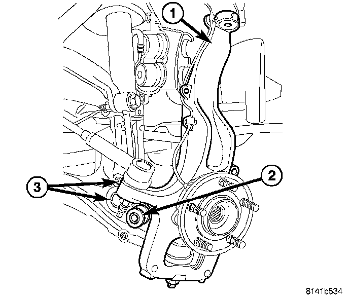 6. Install the steering knuckle (3) to the upper ball joint (2) and tighten the nut (4) to 95 Nm (70 ft. lbs.).