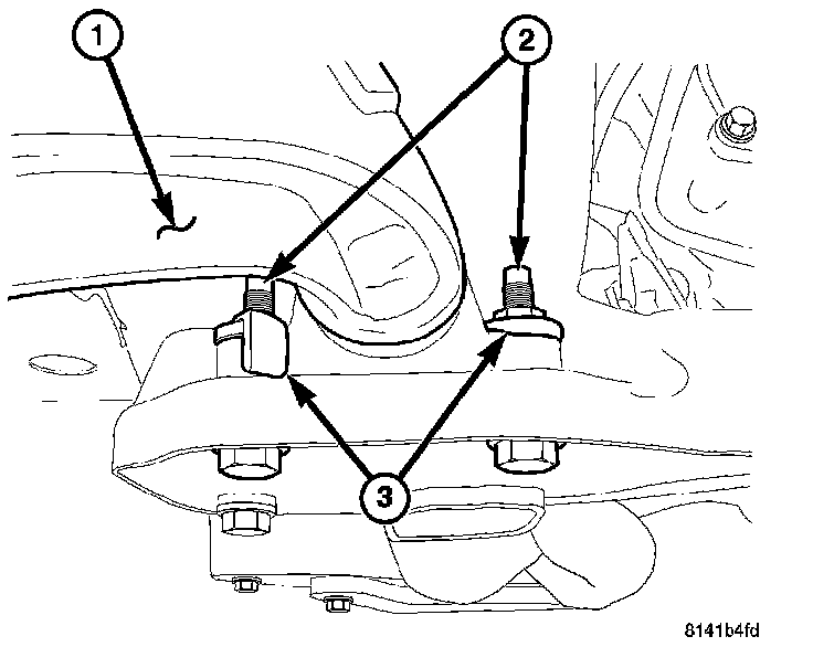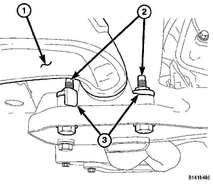 7. Remove the rear bolts (2) and flag nuts (3) from the lower control arm (1).