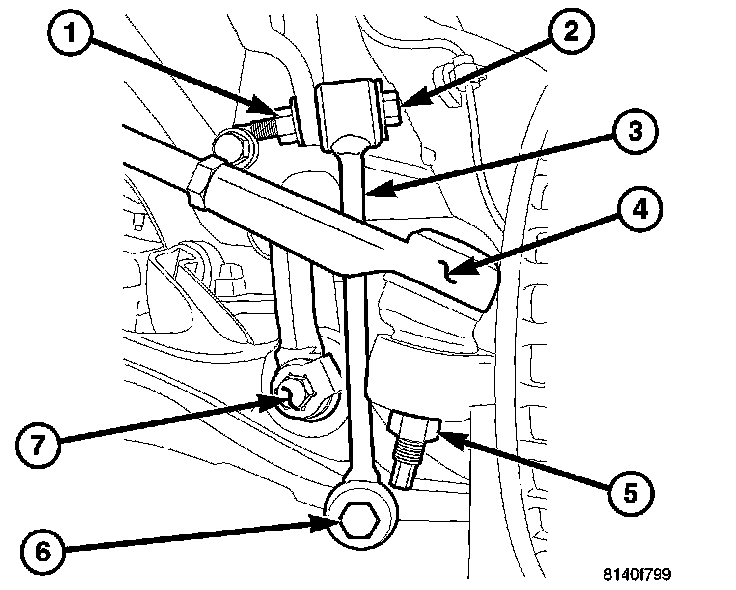 5. Install the stabilizer link (6) at the lower control arm and tighten to 115 Nm (85 ft. lbs.).