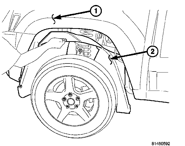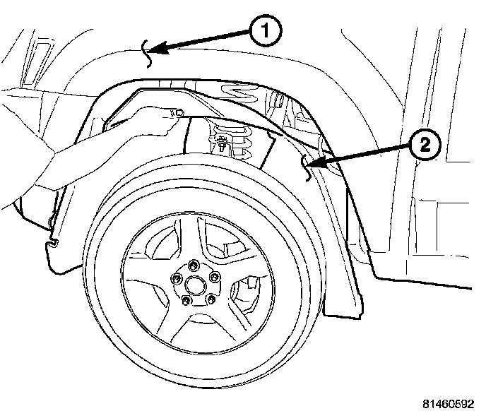 5. Install the inner fender well (2).