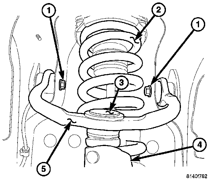 1. Install the upper control arm (5) to the vehicle.