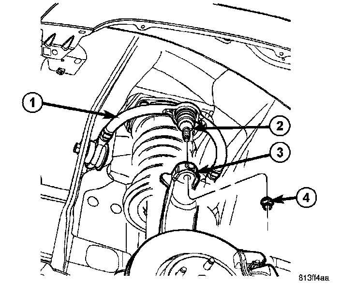 4. Install the upper ball joint retaining nut (4) and tighten the nut to 95 Nm (70 ft. lbs.).