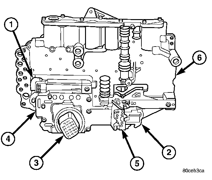 The solenoids receive electrical power from the Transmission Control Relay through a single wire. The TCM energizes or operates the solenoids individually by grounding the return wire of the solenoid as necessary. When a solenoid is energized, the solenoid valve shifts, and a fluid passage is opened or closed (vented or applied), depending on its default operating state. The result is an apply or release of a frictional element.