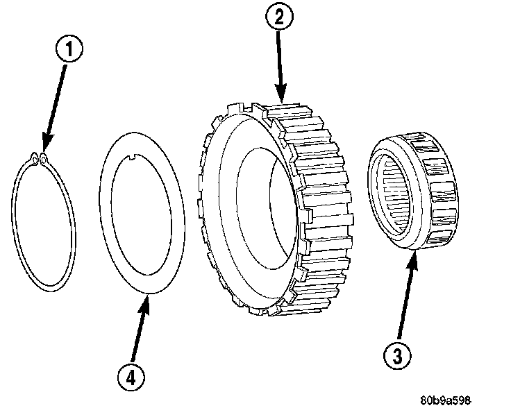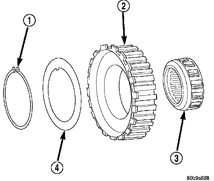 4. Separate the low/reverse clutch (3, 4) from the overrunning clutch (12).