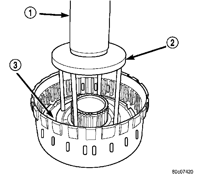 11. Install the low/reverse reaction plate (2) into the low/reverse clutch retainer (5). The reaction plate is directional and must be installed with the flat side down.