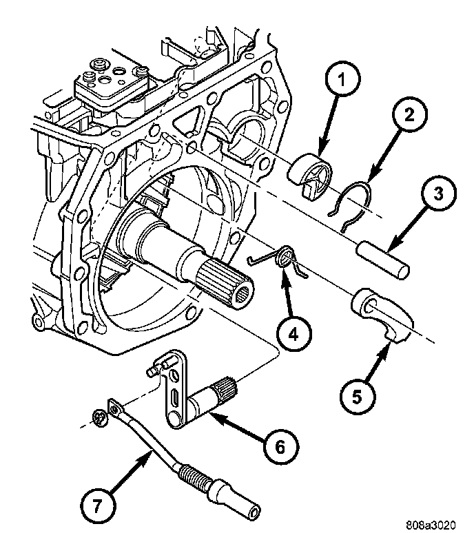 5. Install the park pawl (5), spring (4), and shaft (3).