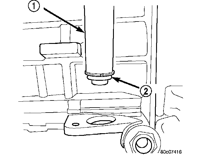 8. Install a new dipstick tube seal (2) using Seal Installer 8254 (1).