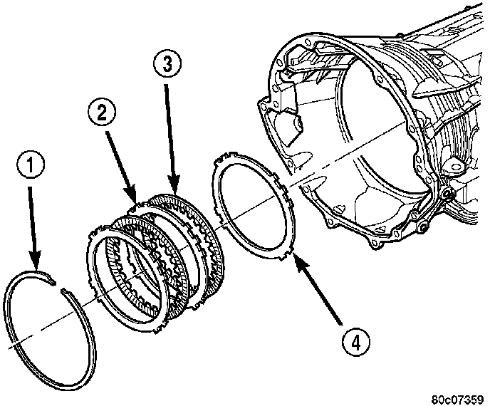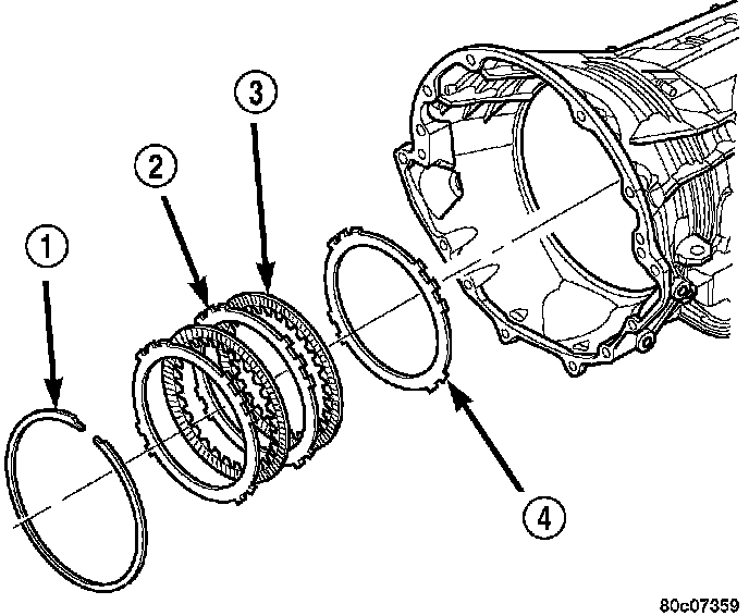 NOTE: Before final assembly of transmission centerline, the 2C/4C clutch components should be installed into position and measured as follows: