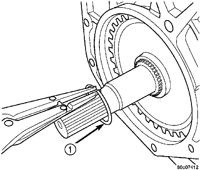22. Install the snap-ring (1) to hold the park sprag onto the output shaft.