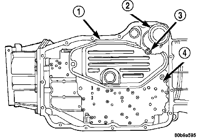 37. Apply a bead of RTV silicone and install the extension/adapter housing onto the transmission case.