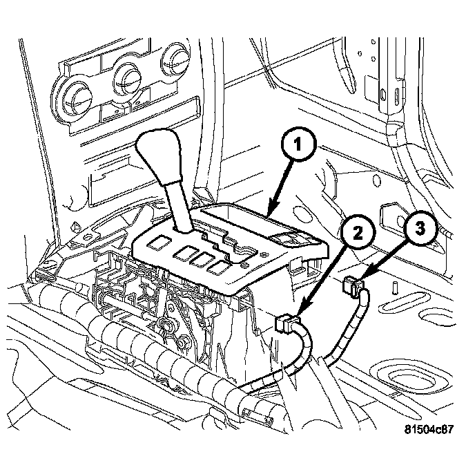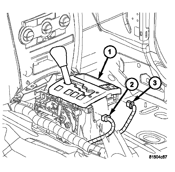 7. Disengage all wiring connectors (2, 3) from the shifter assembly (1).