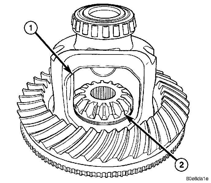 2. Install differential side gears (2) and thrust washers.
