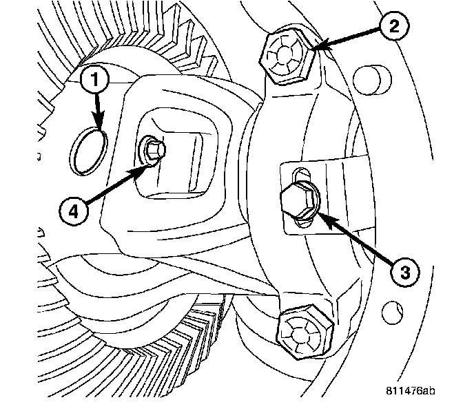 6. Tighten bearing cap bolts (2) to 136 Nm (100 ft. lbs.).