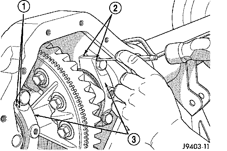 4. Remove bearing adjuster lock bolt (3) from bearing caps.