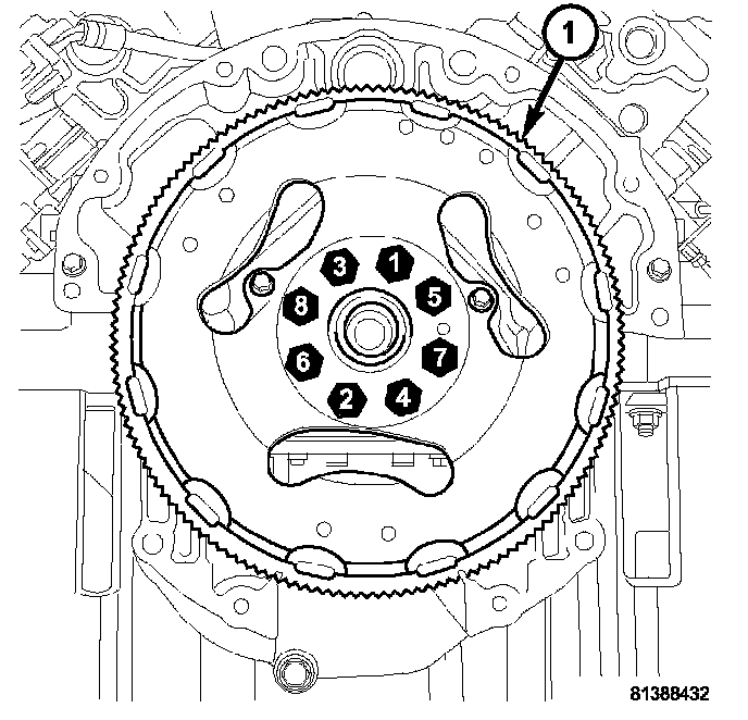 2. Remove the bolts and flexplate (1).