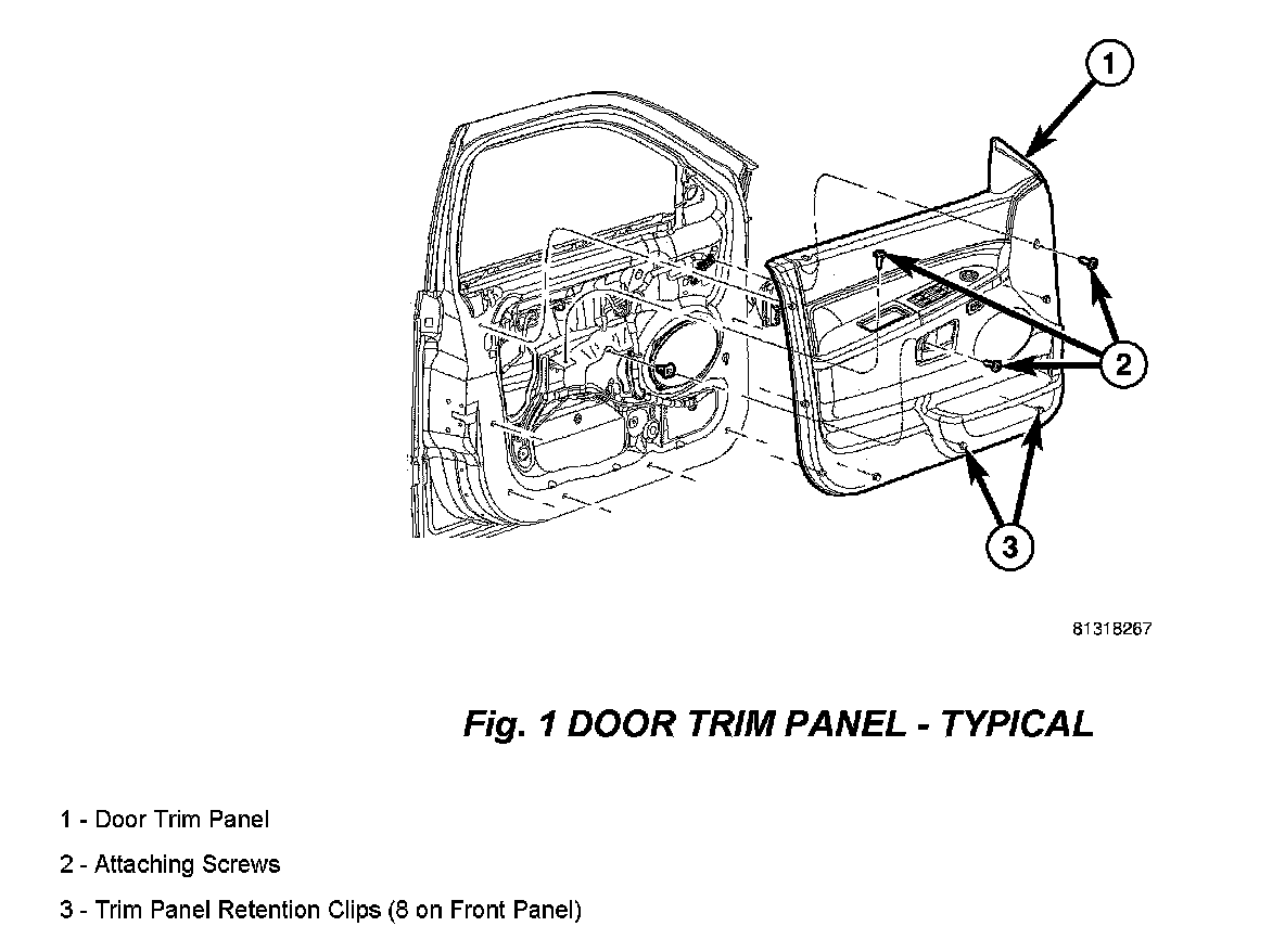 The plastic retainers used to attach the door trim panel to the inner door panel must be replaced each time the door trim panel is removed.